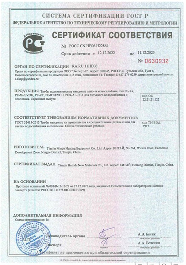 A Tianjin Huilide New Materials é uma empresa comercial da Tianjin Minde Heating Equipment. A empresa está localizada na bela cidade costeira de Tianjin. Cobrindo uma área de 10,000 metros quadrados, possui 92 linhas avançadas de produção de tubos PEXa, 5 linhas de produção de barreira de oxigênio PEXa, 2 linhas de produção de tubos PERT, 2 linhas de produção de tubos PEX-Al-PERT e 10 de moldagem por injeção equipamentos de acessórios para tubos, com uma produção anual de 100 milhões de metros de capacidade de produção de tubos.